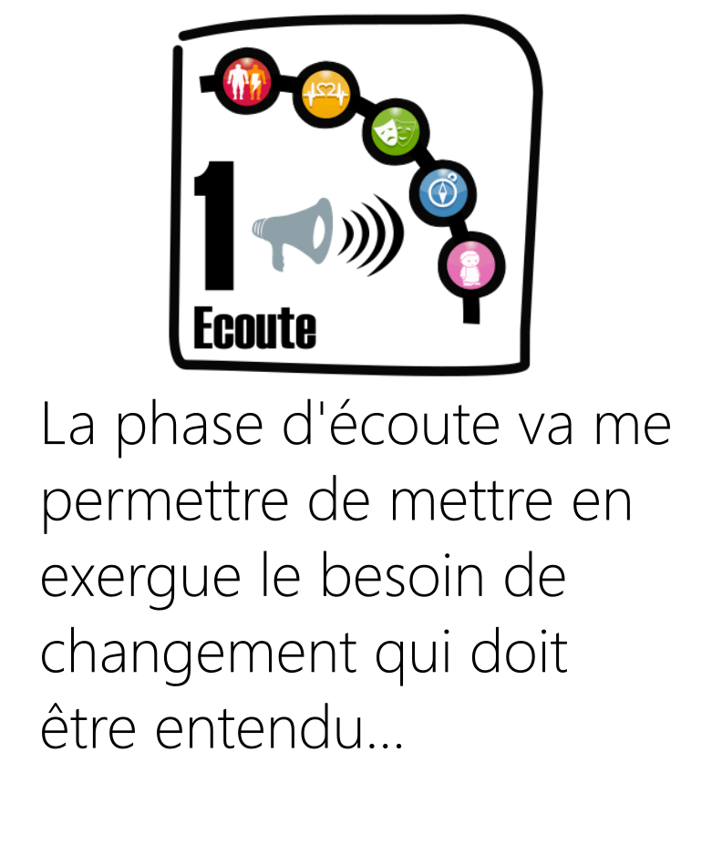 La roue de l'Éveil est l'outil phare de mise en œuvre du changement avec Mhéos grâce auquel chaque situation de vie source d'inconfort, de gêne ou de souffrance est l'opportunité d'enclencher un processus en quatre phases : ÉCOUTE du besoin de changement qui se présente, ANALYSE des enjeux, INTÉGRATION du changement requis et ACTION concrète pour pérenniser ledit changement.